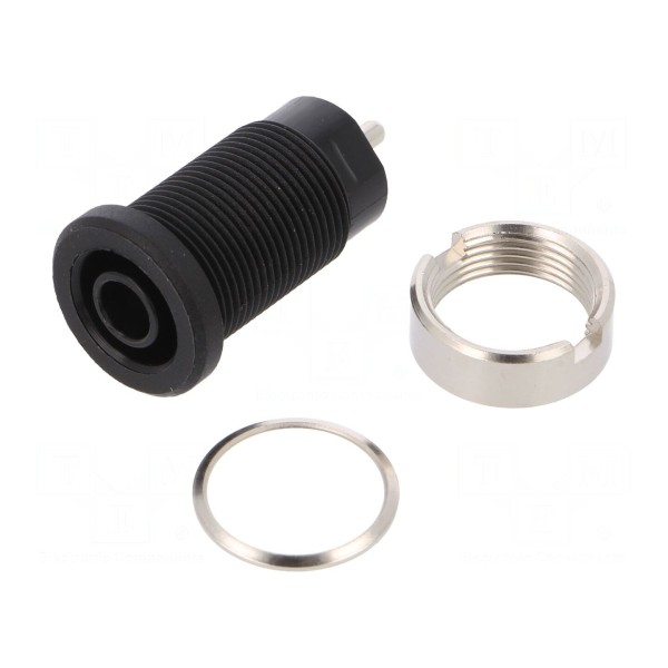 Złącze bananowe 4mm, gniazdo, 24A, montaż panelowy, czarny