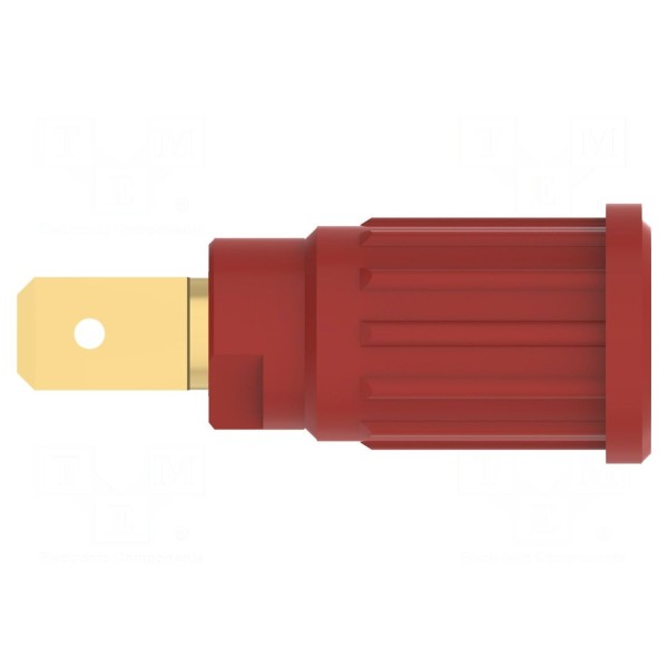 Złącze laboratoryjne typu gniazdo bananowe 4mm przeznaczone jest do montażu na panelu metodą wciskową. Element charakteryzuje się napięciem znamionowym 1kV oraz dopuszczalnym prądem znamionowym 32A, co pozwala na wykorzystanie w układach o podwyższonym obciążeniu. Konstrukcja wykorzystuje złocone pokrycie styku o rezystancji 3mΩ, co zapewnia stabilne połączenie elektryczne.