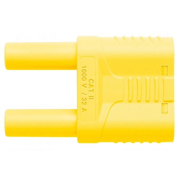 Element charakteryzuje się niklowanym pokryciem styków, co zapewnia parametry połączeniowe w środowisku laboratoryjnym. Komponent może być eksploatowany w zakresie temperatur pracy od -25°C do 80°C. Obudowa złącza wykonana jest w kolorze żółtym.