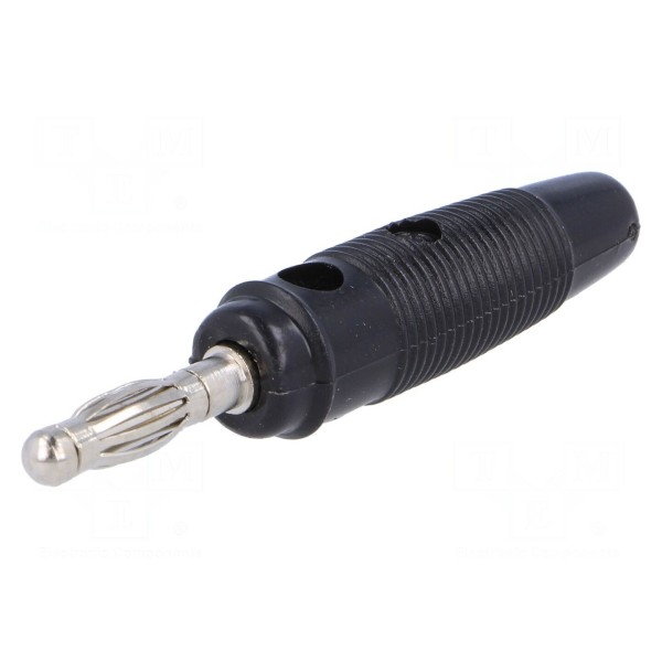 Złącze bananowe 4mm, wtyk 10A, 60V DC, czarne