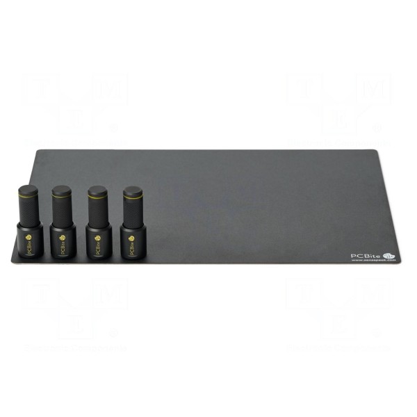 W zestawie: duża płytka bazowa (A4), komplet podkładek izolujących, mata izolacyjna, ścierka z mikrofibry, uchwyt PCBite x4. Wysokość elementów zestawu wynosi 50mm.