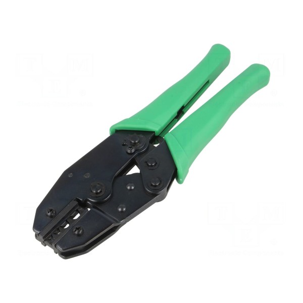 Narzędzie przeznaczone jest do zaciskania końcówek nieizolowanych na przewodach o przekrojach 0,1mm², 1,5mm², 2,5mm² oraz 6mm². Konstrukcja wykonana została ze stali węglowej, która została poddana procesowi hartowania oraz czernienia, co zwiększa wytrzymałość mechaniczną oraz odporność na korozję.