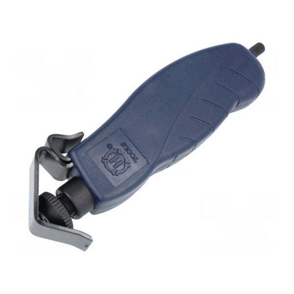 Konstrukcja urządzenia umożliwia zdejmowanie izolacji z końców przewodów, jak również na środku ich długości. Narzędzie wyposażone jest w obrotowy nóż, który pozwala na wykonywanie cięć wzdłużnych, spiralnych oraz poprzecznych po obwodzie. Użytkownik ma możliwość regulacji głębokości nacinania izolacji, co zwiększa precyzję podczas obróbki.