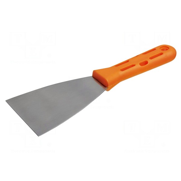 Narzędzie wyposażone w ostrze o szerokości 80mm wykonane ze stali nierdzewnej. Zastosowany materiał zapewnia odporność na korozję podczas wykonywania prac remontowych i wykończeniowych.