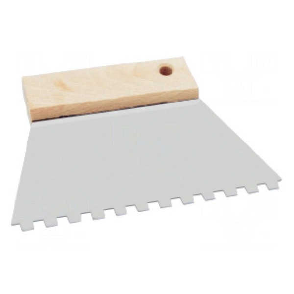 Narzędzie typu szpachla o całkowitej długości 150 mm przeznaczone jest do prac wykończeniowych oraz precyzyjnego rozprowadzania mas. Produkt charakteryzuje się szerokością końcówki wynoszącą 6 mm.
