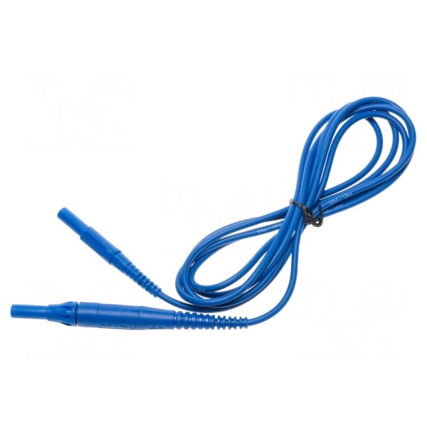 Przewód pomiarowy wyposażony w wtyki bananowe 4 mm umieszczone po obu stronach. Izolacja wykonana z tworzywa PVC zapewnia trwałość użytkową w standardowych warunkach pomiarowych. Element ten przystosowany jest do pracy z prądem znamionowym o natężeniu do 10 A.
