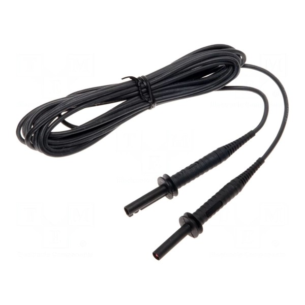 Przewód pomiarowy o długości 5 metrów został zaprojektowany do zastosowań wymagających wysokiego napięcia znamionowego wynoszącego 5kV. Produkt wyposażony jest po obu stronach w standardowe wtyki bananowe o średnicy 4 mm.