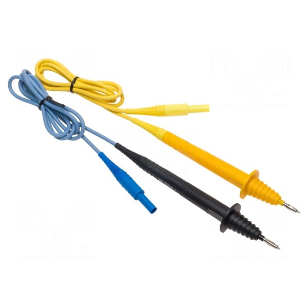 Przewody pomiarowe typu przewody pomiarowe zostały wyposażone we wtyki bananowe o średnicy 4mm. Produkt został zaprojektowany do współpracy z przyrządami pomiarowymi posiadającymi standardowe gniazda bananowe.