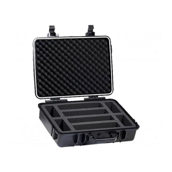 Obudowa utrzymana jest w kolorze czarnym. Konstrukcja walizki została zaprojektowana specjalnie z myślą o dedykowanym zastosowaniu do cęg pomiarowych.