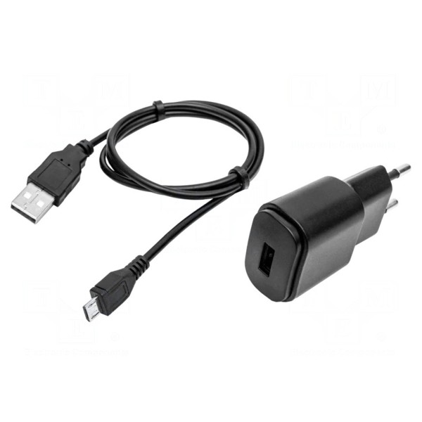 Zasilacz pełni funkcję ładowarki przeznaczonej do urządzeń pomiarowych. Akcesorium zostało wyposażone w wtyk USB 2.0 typu A oraz wtyk USB micro B, co umożliwia podłączenie kompatybilnego sprzętu do zasilania.