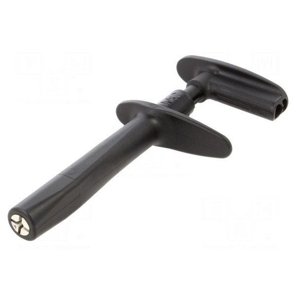 Całkowita długość akcesorium wynosi 170mm, co umożliwia wygodną obsługę w warunkach warsztatowych. Element ten zapewnia zgodność z normą EN 61010 oraz spełnia wymogi klasy bezpieczeństwa CAT IV 1000V. Konstrukcja chwytaka dostosowana jest do standardowych przewodów pomiarowych zakończonych wtykiem 4mm.