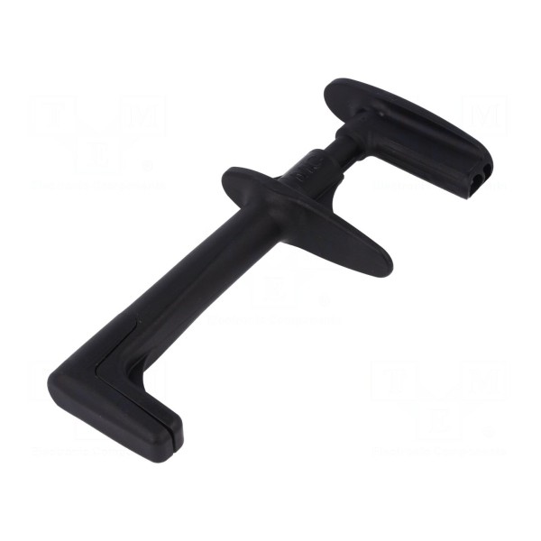 Konstrukcja urządzenia zapewnia zgodność z normą EN 61010 oraz spełnia wymogi bezpieczeństwa kategorii CAT IV 600V. Element wykonany w kolorze czarnym.
