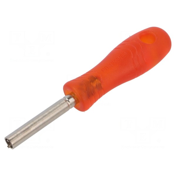 Narzędzie typu klucz przeznaczone jest do obsługi gniazd bananowych oraz dokręcania nakrętek. Konstrukcja elementu umożliwia montaż i demontaż komponentów w aplikacjach wykorzystujących standardowe złącza laboratoryjne.