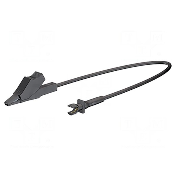 Przewód połączeniowy marki STÄUBLI został wyposażony w zacisk krokodylkowy oraz złącze widełkowe. Produkt posiada czarną izolację.