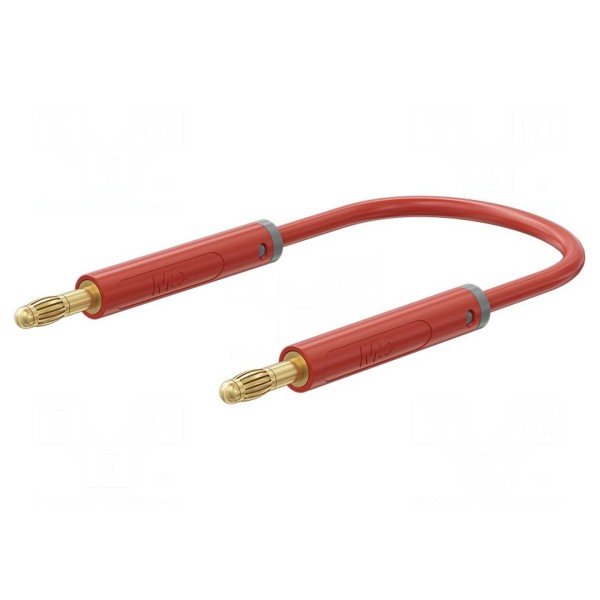 Przewód pomiarowy marki Stäubli o długości 1m wyposażony jest obustronnie we wtyki bananowe o średnicy 4mm. Konstrukcja charakteryzuje się nieizolowanym wykonaniem złączy oraz przewodem o przekroju 1mm² z izolacją wykonaną z PVC w kolorze czerwonym.