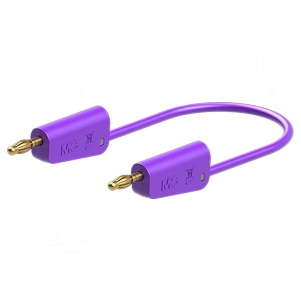 Przewód pomiarowy o długości 0,75 metra został zaprojektowany do pracy pod napięciem znamionowym 30V AC oraz 60V DC przy natężeniu prądu do 19A. Zastosowany przekrój przewodu wynosi 1mm², a całość wykonano z użyciem izolacji z tworzywa PVC w kolorze fioletowym.