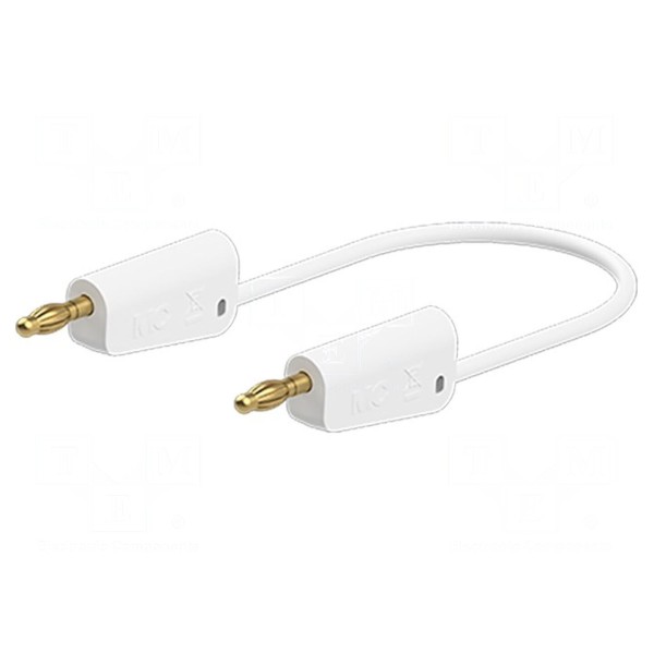 Przewód pomiarowy o długości 0,75 m wyposażony jest obustronnie we wtyki bananowe o średnicy 4 mm. Konstrukcja złączy obejmuje gniazda osiowe o średnicy 4 mm, przy czym same wtyki charakteryzują się nieizolowaną budową oraz złoconym pokryciem styków.