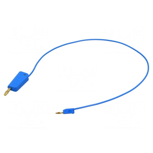 Przewód pomiarowy o długości 0,45 m przeznaczony jest do wykonywania połączeń w układach elektronicznych. Produkt charakteryzuje się prądem znamionowym 10 A oraz dopuszczalnym napięciem pracy wynoszącym 30 V AC lub 60 V DC. Kabel wyposażony jest w wtyki bananowe o średnicach 2 mm oraz 4 mm, które posiadają zintegrowane gniazda osiowe o odpowiednich wymiarach.