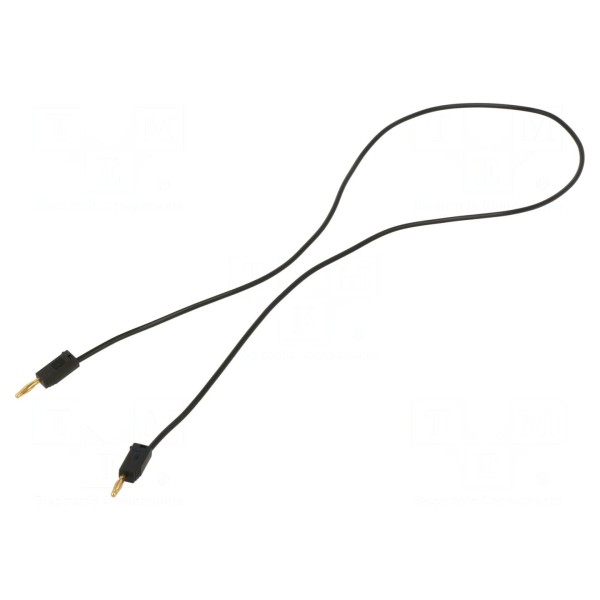 Przewód pomiarowy o długości 0,6 m zakończony obustronnie wtykiem bananowym 2 mm. Element charakteryzuje się prądem znamionowym wynoszącym 10 A oraz napięciem znamionowym 30 V AC i 60 V DC.