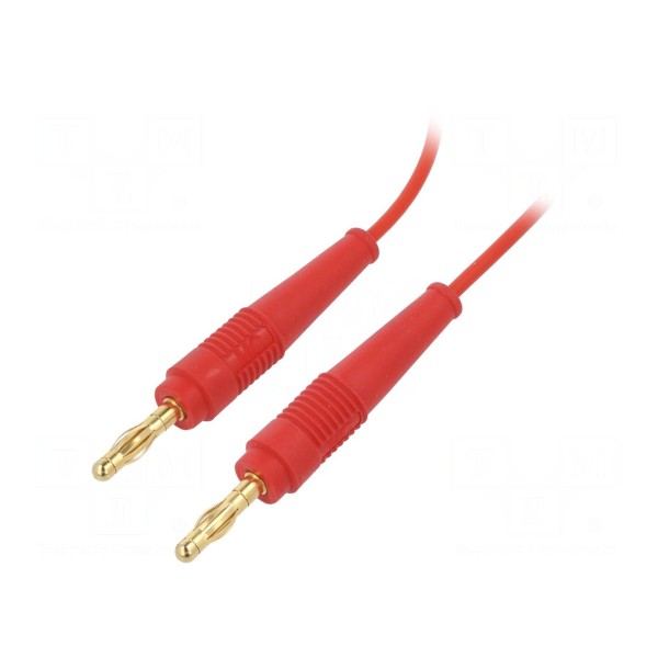 Konstrukcja przewodu obejmuje wtyki bananowe 4 mm umieszczone po obu stronach kabla. Elementy stykowe posiadają złocone pokrycie, co wpływa na parametry połączenia, a przewód o przekroju 1 mm² wykonany jest w wersji nieizolowanej z izolacją z PVC w kolorze czerwonym.