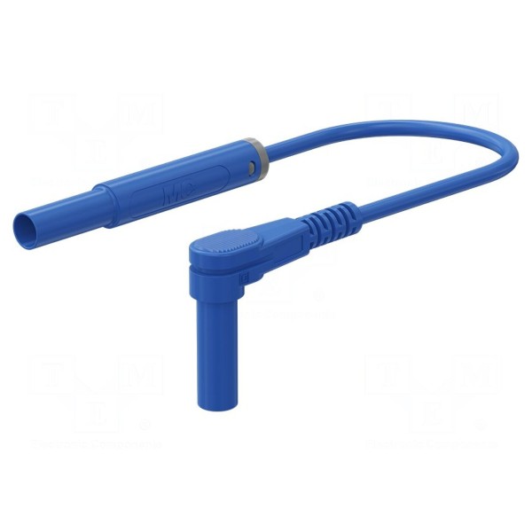 Elementy złączeniowe posiadają izolowaną konstrukcję, co zwiększa bezpieczeństwo podczas użytkowania. Komponent spełnia wymagania norm EN 61010 oraz posiada klasyfikację bezpieczeństwa CAT III 1000V i CAT IV 600V. Przewód w kolorze niebieskim przeznaczony jest do wykonywania połączeń w układach pomiarowych.