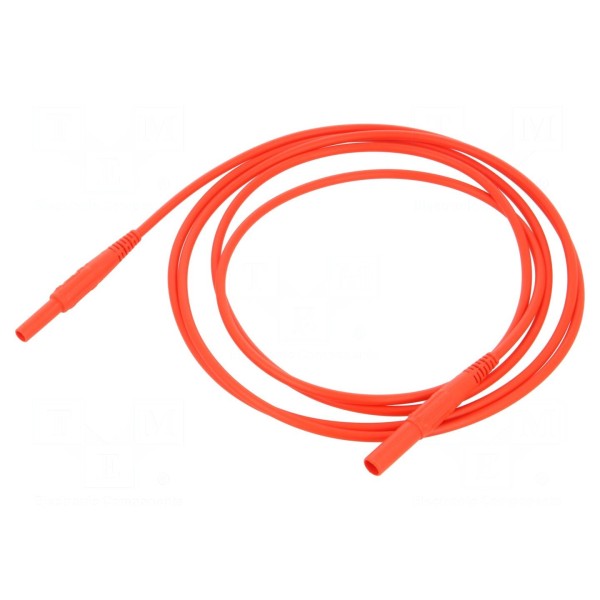Element ten posiada przekrój przewodu 1 mm² oraz długość 2 m, a jego izolacja została wykonana z tworzywa PVC. Styki posiadają niklowane pokrycie, zapewniające poprawne parametry połączenia elektrycznego, a całość utrzymana jest w kolorze czerwonym.