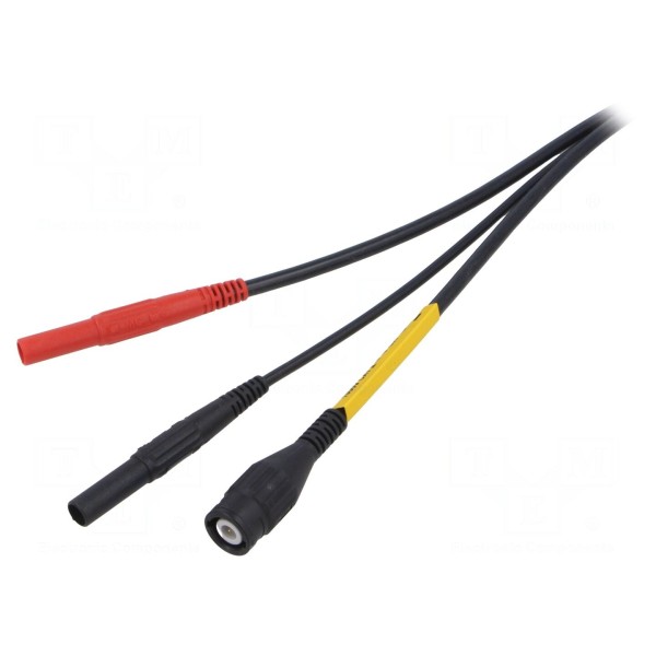 Przewód pomiarowy wyposażony w złącze BNC oraz dwa izolowane wtyki bananowe o średnicy 4 mm. Model ten został zaprojektowany do współpracy z aparaturą kontrolno-pomiarową, zapewniając połączenie między gniazdami BNC a standardowymi punktami pomiarowymi typu banan.