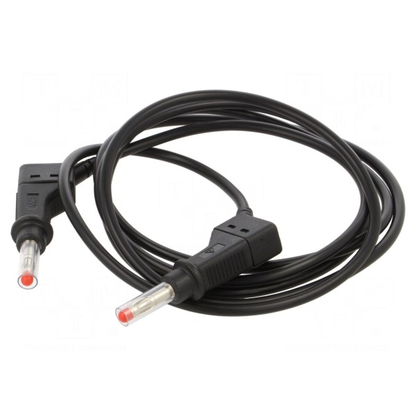 Przewód pomiarowy STÄUBLI o długości 1,5 m został zaprojektowany do realizacji połączeń w układach elektronicznych. Produkt charakteryzuje się prądem znamionowym wynoszącym 19 A oraz wykorzystuje standardowe wtyki bananowe 4 mm umieszczone po obu stronach przewodu. Elementy stykowe posiadają powłokę niklowaną, co wpływa na ich parametry użytkowe.
