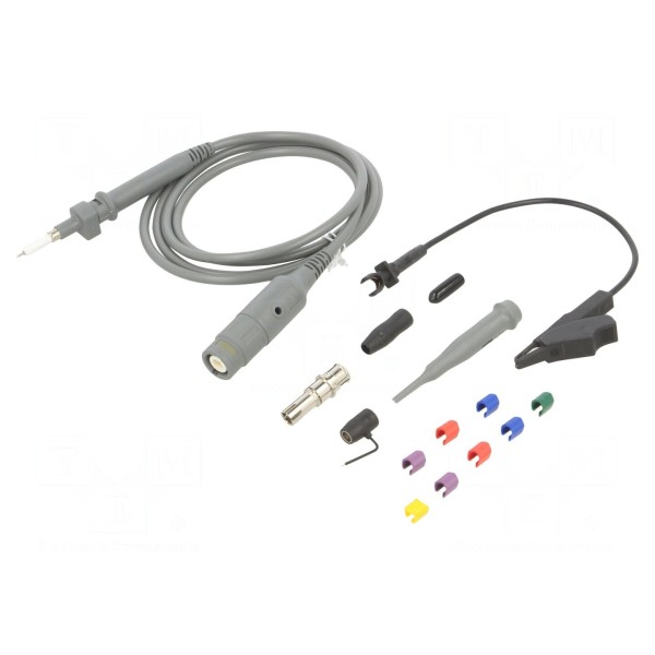 Konstrukcja sondy o długości przewodu 1,2 m została wykonana w kolorze szarym i spełnia wymogi bezpieczeństwa zgodnie z normami CAT III 300V oraz EN 61010. Zestaw zapewnia niezbędne akcesoria do prowadzenia pomiarów w zróżnicowanych warunkach laboratoryjnych.