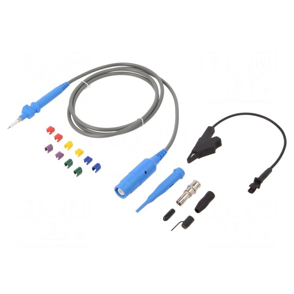 W zestawie: sonda, adapter, chwytak pomiarowy, przewód z zaciskiem krokodylkowym, wtyk oraz zestaw klipsów. Zestaw umożliwia konfigurację połączeń niezbędnych do wykonywania precyzyjnych pomiarów oscyloskopowych.