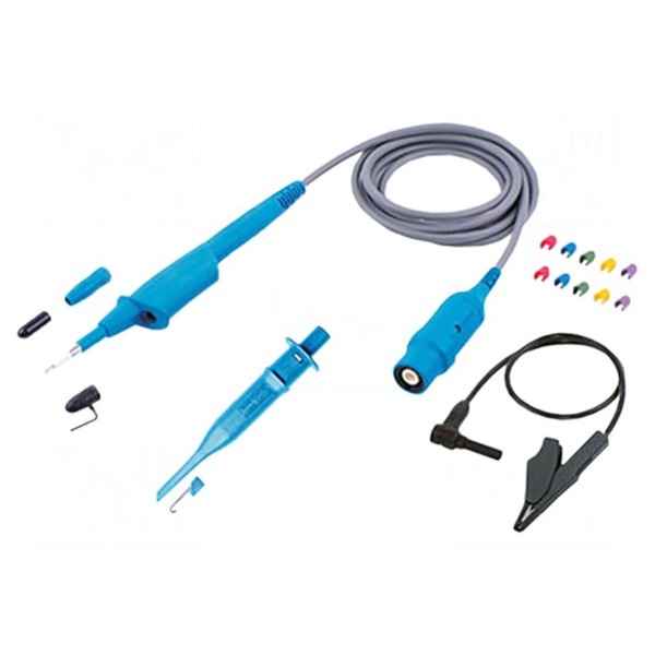 Sonda oscyloskopowa do oscyloskopu charakteryzuje się pasmem przenoszenia wynoszącym 500MHz oraz czasem narastania sygnału na poziomie 0,9ns. Model ten posiada stały dzielnik napięcia 100:1, co umożliwia pracę z wyższymi wartościami napięć wejściowych.