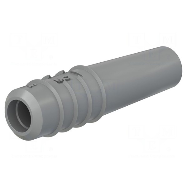 Obudowa typu gniazdo przeznaczona jest do wtyków bananowych o rozmiarze 2mm. Element charakteryzuje się długością całkowitą wynoszącą 16mm i wykonany jest w kolorze szarym.