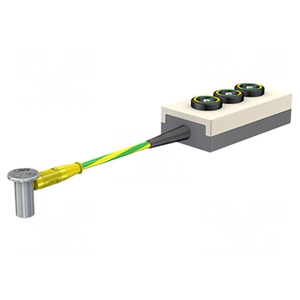 Terminal pomiarowy o długości przewodu wynoszącej 1m jest przeznaczony do połączeń w układach pomiarowych. Wykonany w kolorze żółto-zielonym, posiada izolację zewnętrzną z materiału PVC.