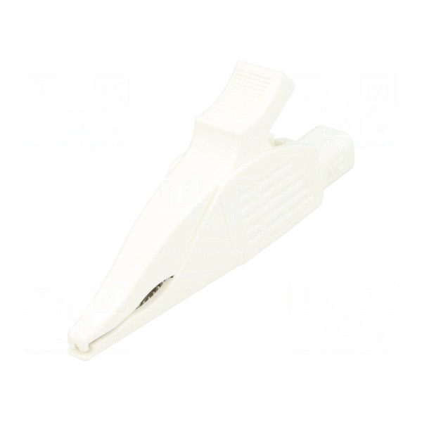 Konstrukcja akcesorium została przystosowana do współpracy z gniazdami o rozmiarze 4mm. Produkt spełnia wymagania normy EN 61010 oraz posiada certyfikację CAT III 1000V. Zacisk został wykonany w białym kolorze.