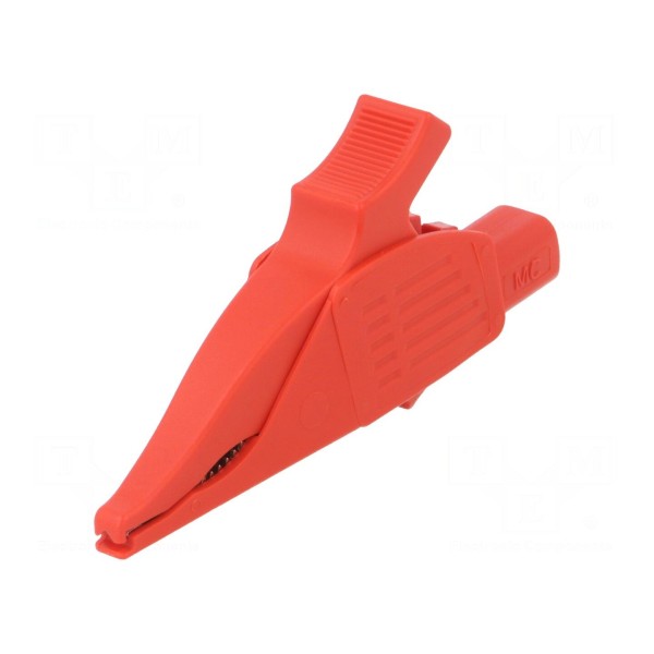 Konstrukcja zacisku wyposażona jest w gniazdo o rozmiarze 4 mm oraz niklowane powierzchnie stykowe. Produkt utrzymany jest w kolorze czerwonym i zapewnia zgodność z normami bezpieczeństwa CAT III 1000 V, CAT IV 600 V oraz EN 61010.