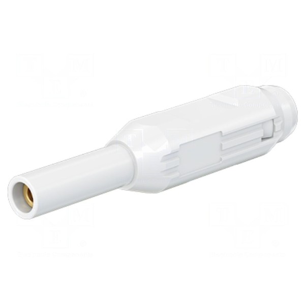 Złącze laboratoryjne typu bananowego o średnicy 1,5mm występuje w formie izolowanego gniazda w kolorze białym. Element został zaprojektowany z myślą o aplikacjach medycznych, co potwierdza zgodność z normą E-DIN 42802-2. Styki złącza posiadają pokrycie złocone, a korpus wykonano z poliamidu.