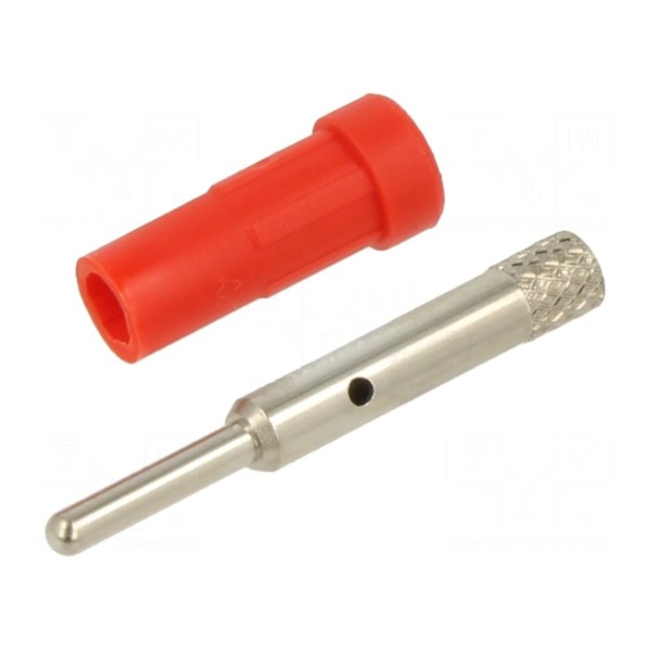 Styki komponentu zostały pokryte warstwą niklu, zapewniającą parametry połączeniowe. Montaż gniazda odbywa się poprzez lutowanie, przy wykorzystaniu otworu montażowego o średnicy 3,9mm. Całkowita długość elementu wynosi 24,5mm, a obudowa wykonana jest w kolorze czerwonym.