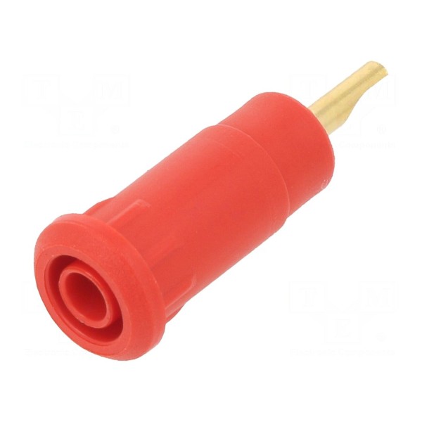 Złącze bananowe 2mm w wersji gniazda jest przeznaczone do montażu lutowanego. Produkt charakteryzuje się izolowaną konstrukcją oraz złoconym pokryciem styku, co zapewnia stabilność połączeń. Całkowita długość elementu wynosi 28mm.