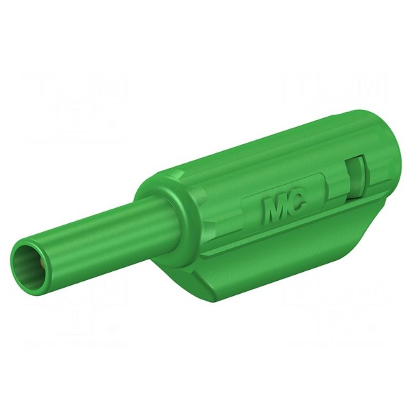 Złącze bananowe 2mm, wtyk 10A, 600V, kolor zielony