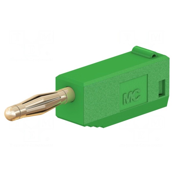 Złącze bananowe 2mm, wtyk, 10A, 30VAC/60VDC, kolor zielony