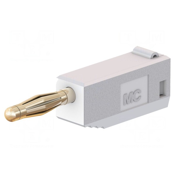 Złącze bananowe 2mm, wtyk 10A, 30VAC/60VDC, białe