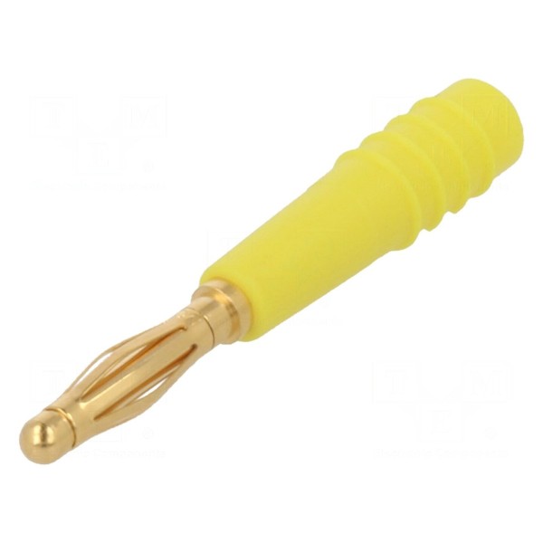 Element wykonano w wersji nieizolowanej z pozłacaną powierzchnią styków. Konstrukcja pozwala na montaż przewodów o maksymalnym przekroju 0,5mm². Obudowa złącza ma kolor żółty.