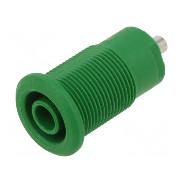 Złącze laboratoryjne typu gniazdo bananowe 4mm przeznaczone jest do montażu na panelu. Element charakteryzuje się prądem znamionowym wynoszącym 24A oraz napięciem znamionowym 1kV. Styk posiada wykończenie niklowane, co zapewnia stabilność połączeń elektrycznych.