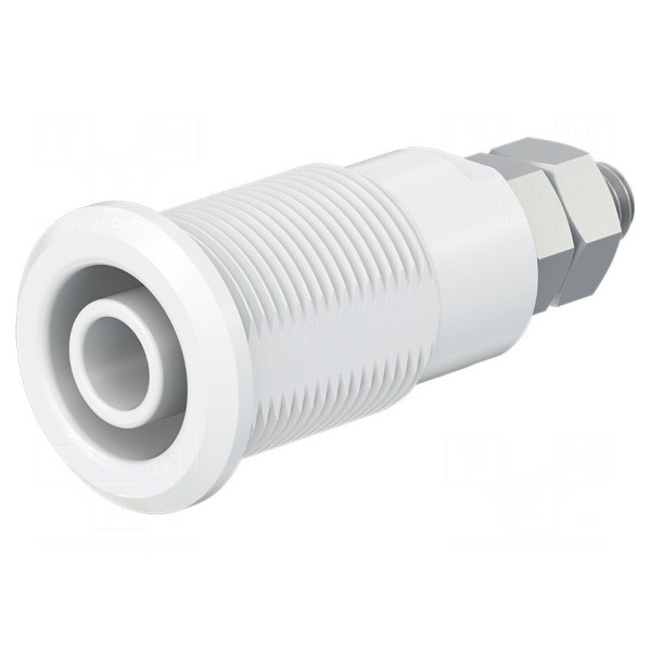Złącze laboratoryjne typu gniazdo bananowe o średnicy 4mm przeznaczone jest do montażu przykręcanego typu M4. Element został wykonany z mosiądzu z niklowaną powierzchnią styku, co zapewnia parametry przewodzenia przy prądzie znamionowym wynoszącym 32A.