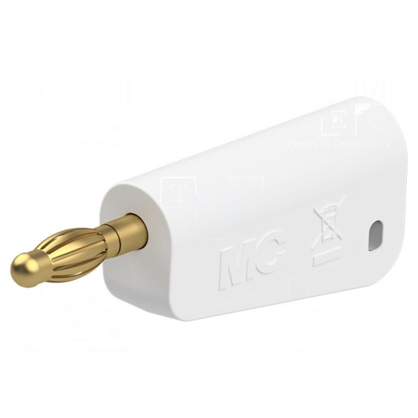 Złącze bananowe 4mm, wtyk, 19A, 30VAC/60VDC, białe