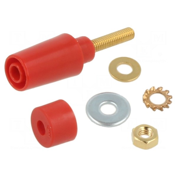 Gniazdo bananowe 4mm, 1kV, 32A, kolor czerwony