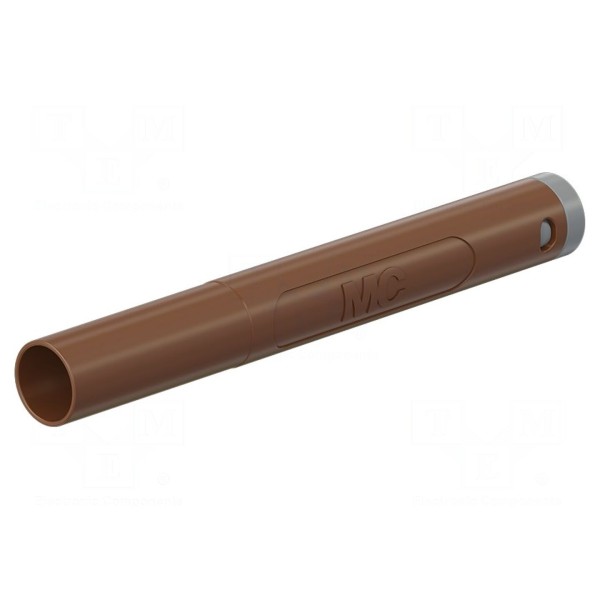 Montaż przewodu odbywa się przez lutowanie. Złącze obsługuje przewody o maksymalnym przekroju 2,5mm² oraz średnicy zewnętrznej do 3,9mm. Komponent o długości 65mm dostępny jest w kolorze brązowym.