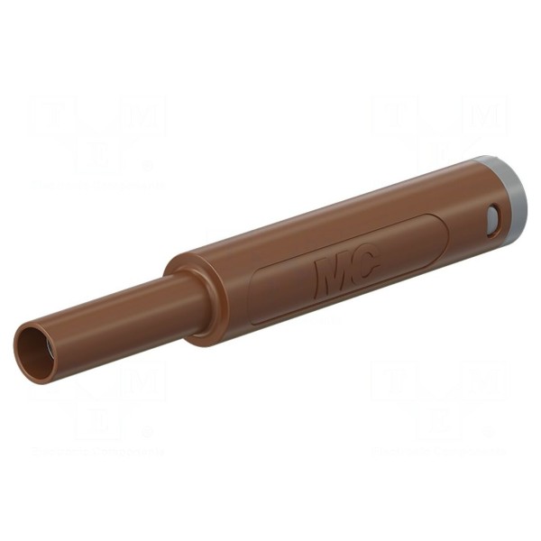 Montaż złącza odbywa się metodą lutowania, a jego konstrukcja umożliwia doprowadzenie przewodu o maksymalnej średnicy 3,9 mm. Komponent w kolorze brązowym spełnia wymagania norm bezpieczeństwa w kategoriach CAT II 1000V oraz CAT III 600V.