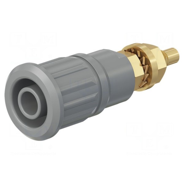 Złącze bananowe 4mm, 1kV/32A, montaż panelowy, kolor szary