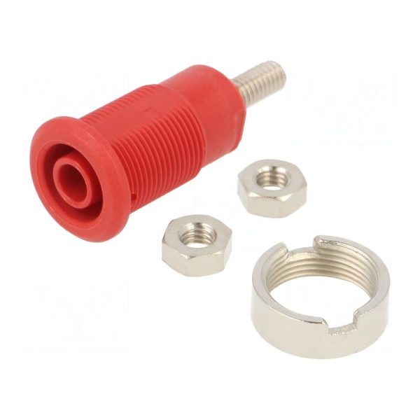Gniazdo bananowe 4mm, 32A, montaż M4, kolor czerwony
